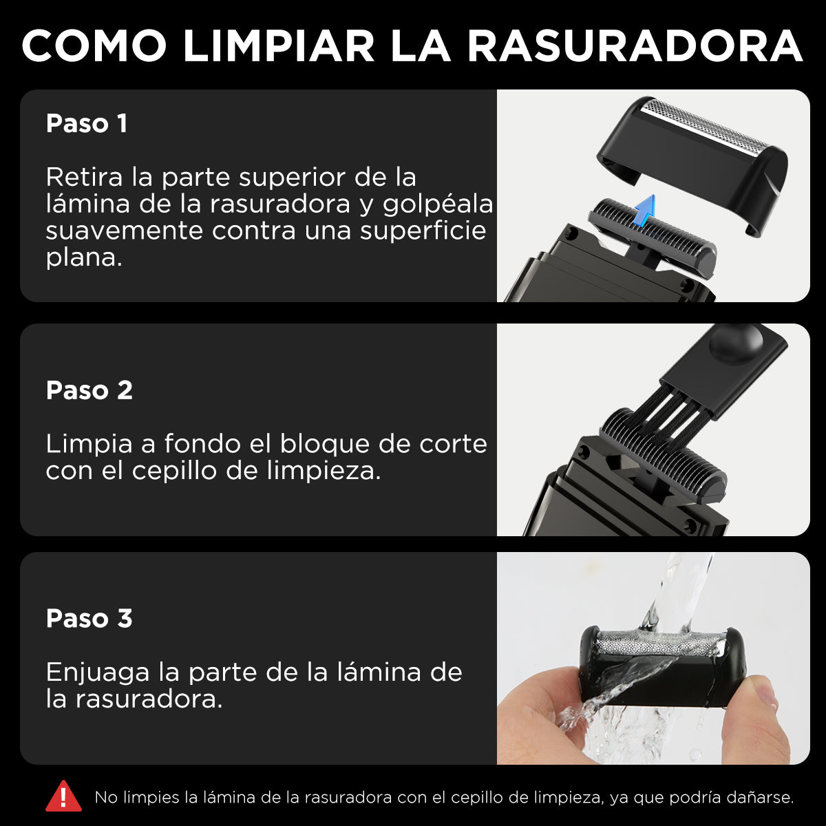 Rasuradoras Eléctricas Su cabeza de corte es desmontable y la malla de cuchilla es lavable. Limpiarla es rápido y sencillo, lo que asegura un buen rendimiento.