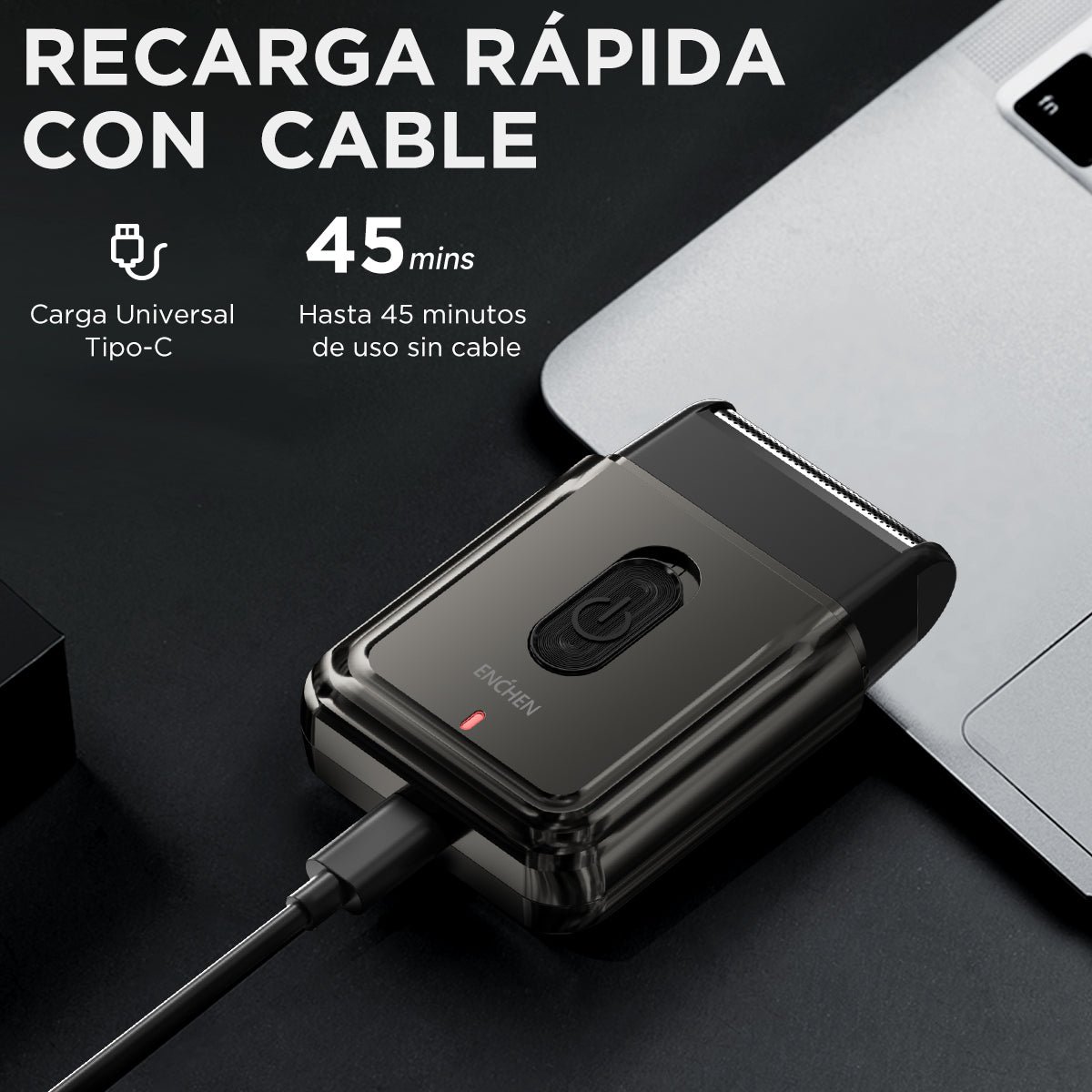 La afeitadora mini portátil Enchen tiene un puerto USB Type - C. Con 8 horas de carga, ofrece 45 minutos de uso.Tan pequeña que cabe en cualquier bolsillo, es ideal para viajes y uso diario.